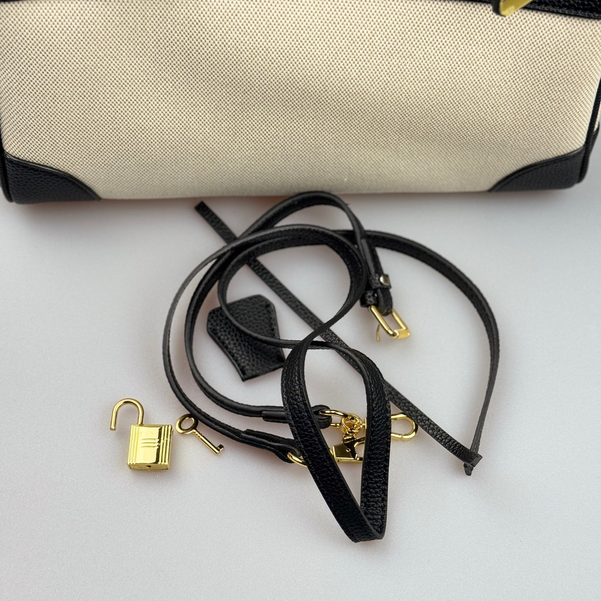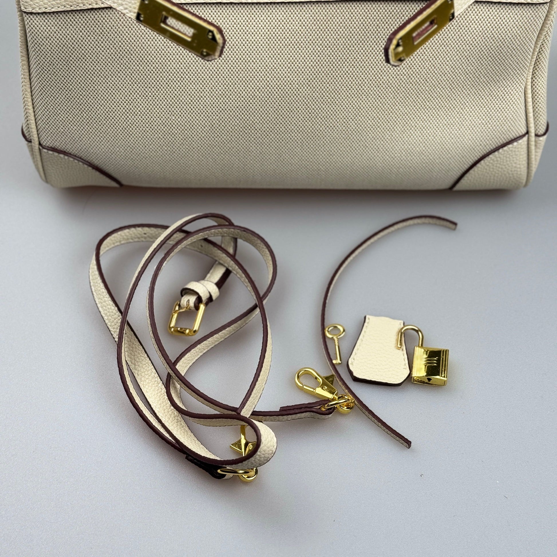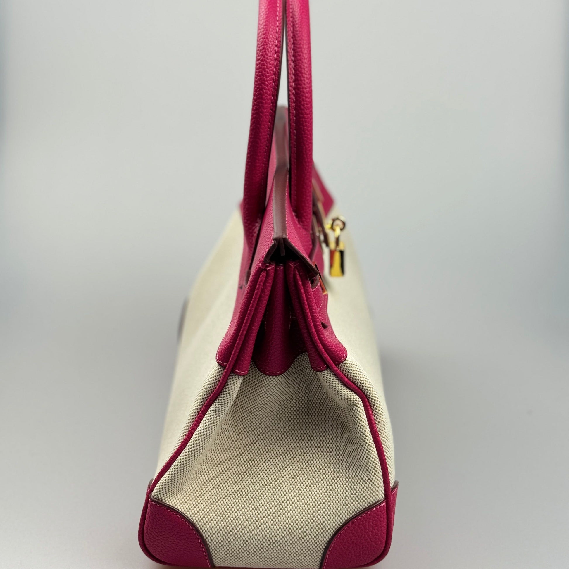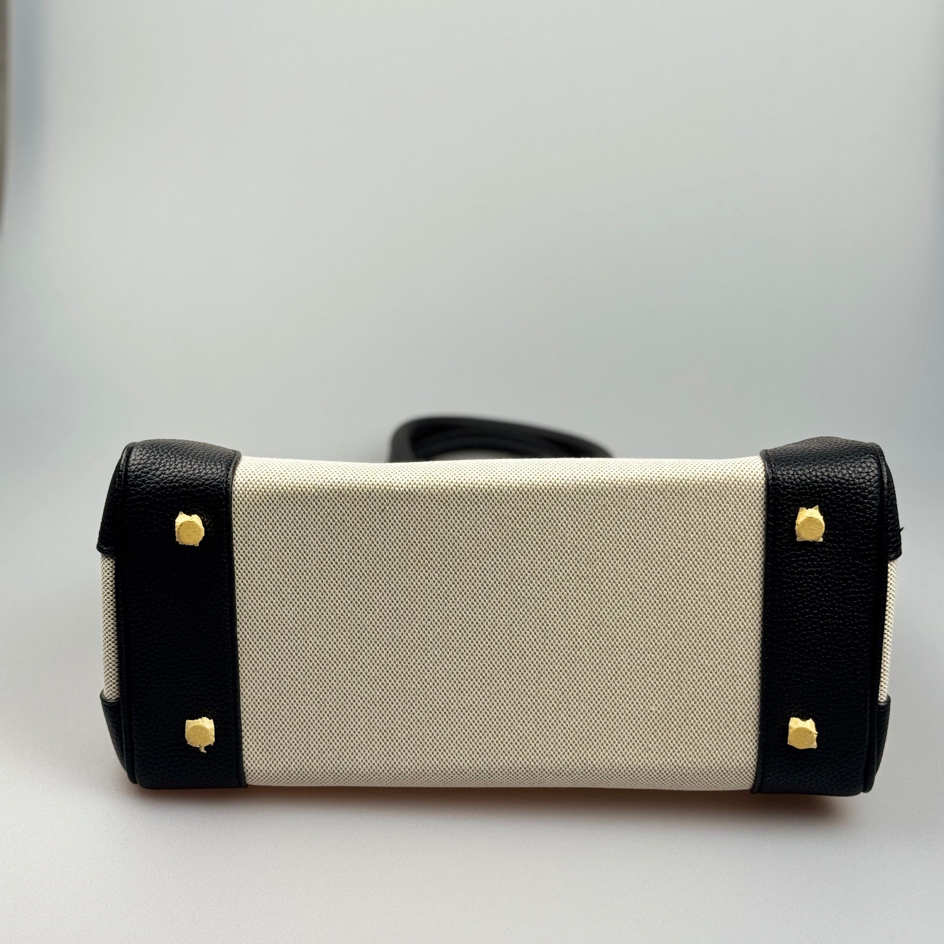 Sofisticação no seu auge. A Mala Estilo Birkin em Tela e Pele Genuína representa o expoente máximo da elegância na nossa coleção. Fabricada com uma combinação de tela robusta de alta gramagem e pele genuína de qualidade superior, esta peça alia durabilidade, requinte e intemporalidade.